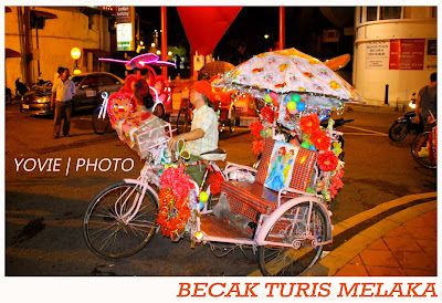 Bila anda berkunjung ke melaka , jangan lupa menyusuri kehidupan malam di melaka yang unik dan penuh kenangan tempo dulu..dari gaya bangunannnya sampai ciri khas kendaraannya yang dilestarikan.seperti becak yang di hias sedemikian rupa dengan di tambah bung bunga disekelilingnya,., dan diberi musik yang enak untuk di nikmati para wisatawan yang menaikinya.,